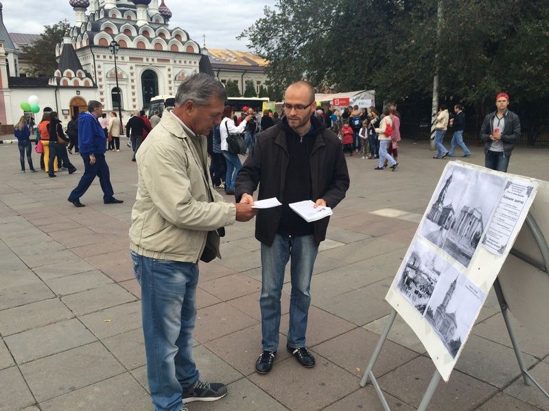 Еще одним подарком горожанам от православного молодежного общества стали специальные переносные стенды, установленные у входа в парк «Липки». Там была размещена информация о располагавшемся на территории парка и разрушенном в годы лихолетья кафедральном Александро-Невском соборе. Прохожие также получили информационные листки о соборном храме.