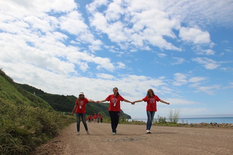 Участники и сами традиционно прошлись по острову пешим походом. Маршрут составляет двенадцать километров и пролегает вдоль побережья: от города Александровска-Сахалинского до села Дуэ: участники проходят скалы Три брата и Три сестры, известные всем по сахалинским открыткам, прибрежный маяк на мысе Жонкьер, который видел еще Антон Чехов, водопады с пресной водой и построенный каторжниками тоннель.
