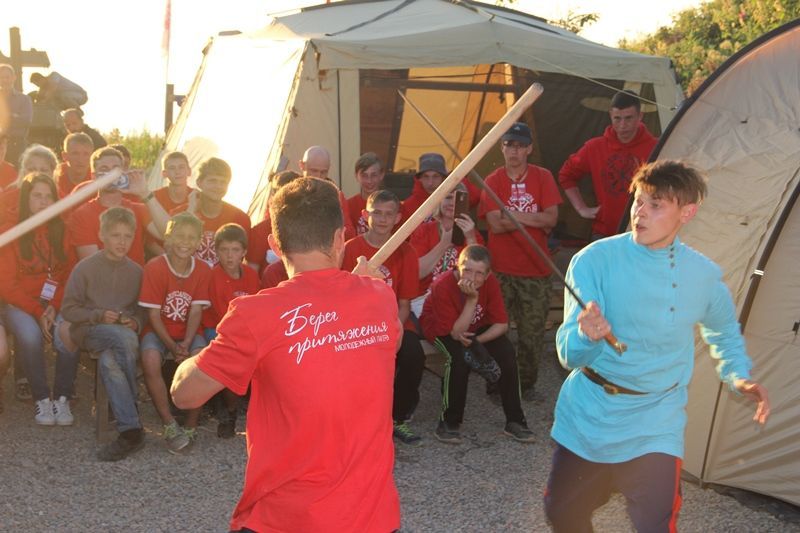 А одиннадцатилетняя Ульяна рассказывает: «Каждому, у кого не было палатки, выдали по палатке. Мы сами их собрали. Дальше нас поделили на группы, лично я – в младшей группе. У каждой группы были свои лекции, но лично мне больше всего понравилось петь и танцевать с казаками; также понравились наши вечорки, когда мы разжигаем на берегу костер и поем. И вообще здесь все как-то кучно, участники помогают друг другу. Например, когда в один из дней был дождь, если у кого-то не было теплой кофты, те, кто жил в соседних палатках всегда выручали, одалживали свои теплые вещи».