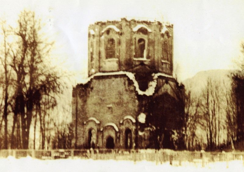 От величественного даже по городским меркам храмового здания остался только квадратный в плане четверик (трапеза) летнего храма с огромными проломами в восточной и западной стенах, с провалившимися верхними углами. Свод храма обвалился.
