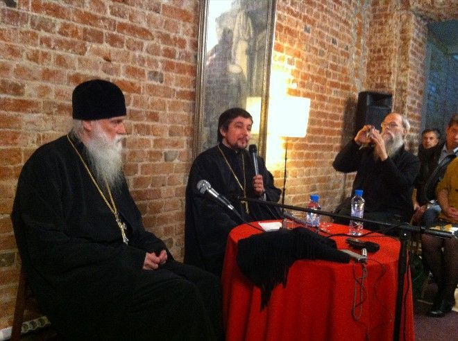 В течение двухчасовой встречи отец Габриэль говорил по-французски. Переводил встречу священник Димитрий Агеев, клирик храма иконы Божией Матери «Всех скорбящих Радость» на Большой Ордынке.