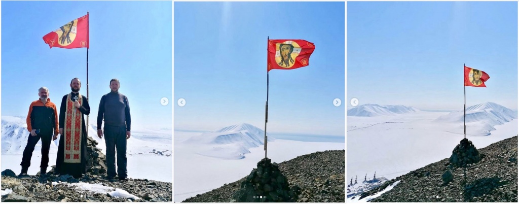 Имеющий большое значение в истории воинской доблести стяг с иконой «Спас Нерукотворный» водрузили к 75-летию Великой Победы в чукотском поселке Провидения на вершине сопки, именуемой местными жителями Портовой горой. Восхождение на сопку совершили местные прихожане во главе со священником храма святителя Иннокентия Московского отцом Павлом Линником.