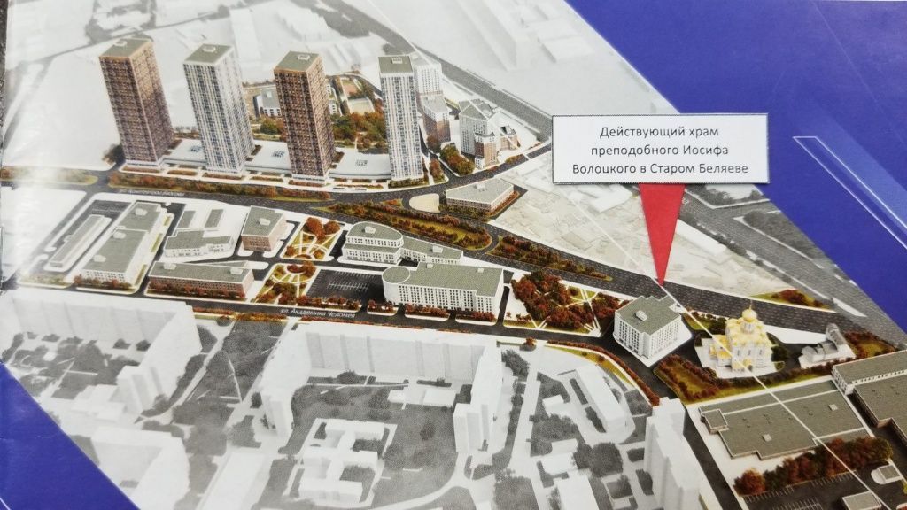Все началось с того, что около года назад к настоятелю прихода в честь Преображения Господня в Старом Беляеве протоиерею Роману Маркову пришли люди, представившиеся авторами проекта застройки Обручевского района, и сообщили, что трасса пройдет прямо по территории, выделенной приходу для возведения храмового комплекса с будущим каменным Преображенским храмом, звонницей, приходским домом и иными строениями. При этом на пути строительной техники оказывалась действующая деревянная церковь во имя преподобного Иосифа Волоцкого.
