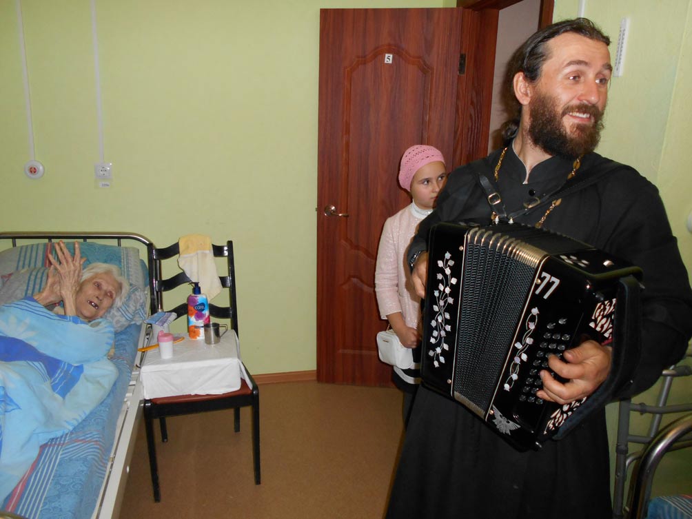 Знакомим с нашим самым добрым и самым лучшим отцом Евгением Пуртовым.Настоятель храма Николая Чудотворца.Тюменский район пгр.Боровский. Наш батюшка умеет всё !!! На фото: Посещение с концертом детей и отца Евгения в успенском Доме престарелых 4 ноября 2015 года.