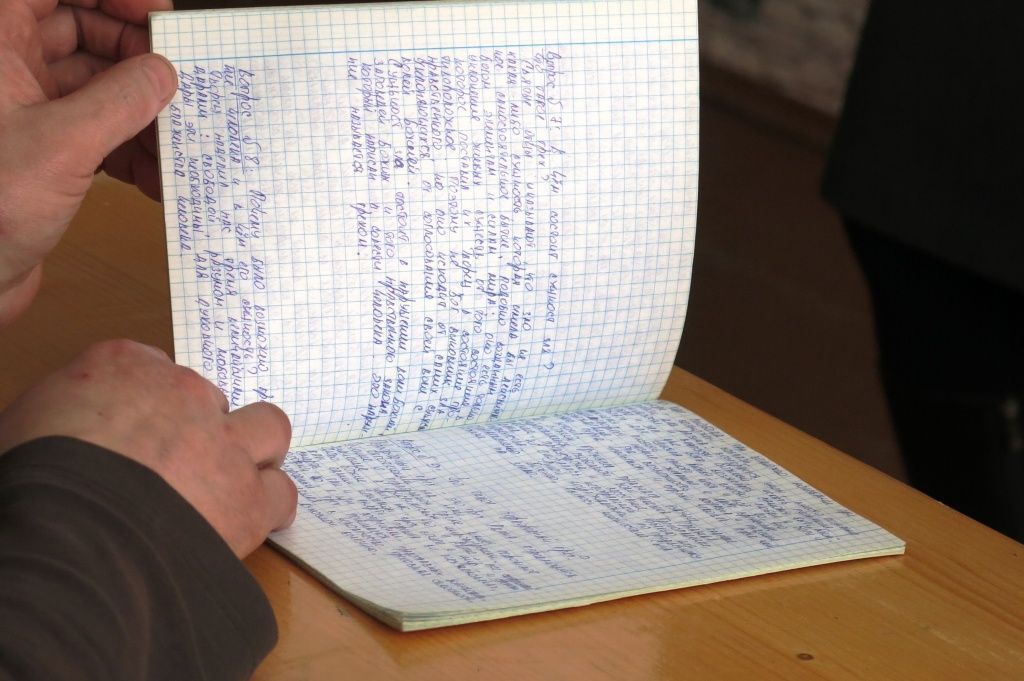Зевающих и спящих, даже на задних рядах, я не заметил – все внимательно слушают, все вместе размышляют. У каждого – тетрадка: задания Елена Владиславовна дает заранее, каждый готовится самостоятельно, а потом все вместе разбирают тему. Библиотека в колонии неплохая, и православный раздел довольно обширен.