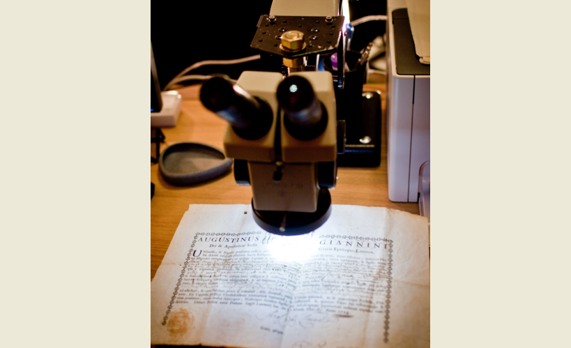 – Когда вопрос стоит о подлинности печати, документа или просто внимательном осмотре, используется микроскоп. Чернила, бумага, состав реликвии: кость это или камень. Чтобы изучить эти вопросы, начинают с микроскопа.