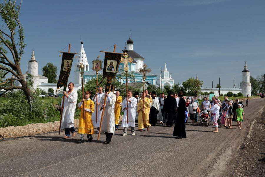 Об этой древней обители мы беседуем с ее игуменом Петром (Дмитриевым). Монастырь этот невелик. Изначально на его территории находилось всего два храма, да и рассчитан он был на небольшое число братии. Главный собор освящен в честь Рождества Богородицы, а другой храм был назван в честь Входа Господня в Иерусалим, но по причине своей ветхости в середине XIX века был разобран, и на его месте благотворитель обители Давид Иванович Хлудов построил хороший теплый храм в честь Феодоровской иконы Божией Матери, которая весьма почиталась в этих местах. Причиной строительства нового храма стала одноименная чудотворная икона Божией Матери, которая была перенесена в обитель после Отечественной войны 1812 года уездным казначеем Алисовым.