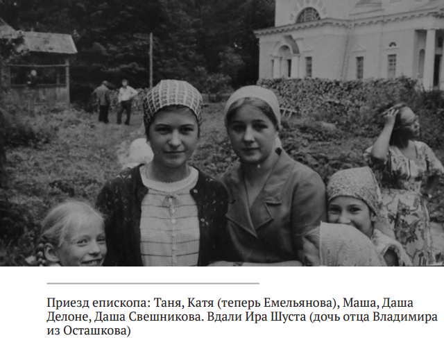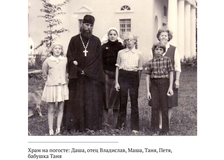 − Первое яркое впечатление возникло от прихода в деревне Васильково. Все же Осташков − интеллигентный город, да и папа там был вторым священником. А тут кладбище, погост Чурилово. С приходом нашим у меня сразу сложились замечательные отношения, твой отец даже говорил, что они меня любят больше, чем его. И мне с ними было интересно. Зато сильные эмоции во мне вызвала московская интеллигенция, буквально поселившаяся у нас дома. Они не виноваты: будучи неофитами, они тоже мало что знали, а вырываясь к духовному отцу на несколько дней, конечно, хотели как можно больше получить от общения с ним. Было лето, когда мы всего одну ночь переночевали своей семьей, а уже на следующий день новые люди приехали. Я в тот год даже за калитку не вышла, только с крыльца направо вынести мусор на задний двор или налево − к колодцу. Первый раз мы прошлись погулять, когда отец Владимир Воробьев и Оксана с Колей Емельяновы приехали.