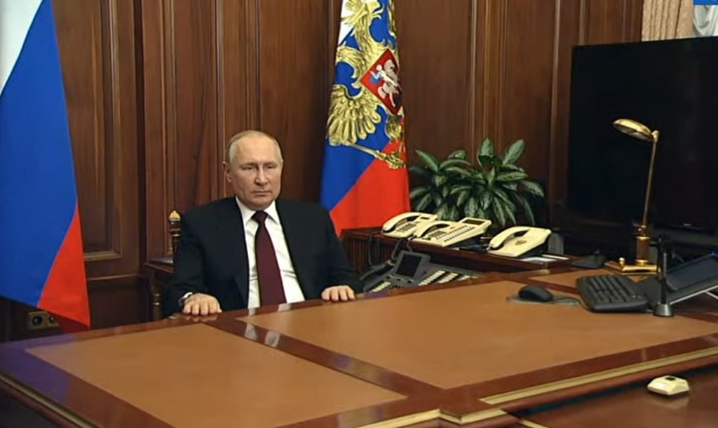 Об этом заявил вечером 21 февраля 2022 года В.В. Путин, выступая со специальным видеообращением.