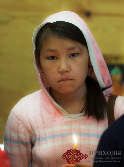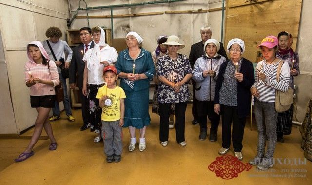 Быстро и слаженно приготовили все необходимое для богослужения, затем последовало облачение в богослужебные одежды и началось самое важное — то, ради чего и приехали. А те самые важные, ради кого и была предпринята эта поездка, – жители Чурапчи – затеплили свечи и так и стояли с огоньками в руках всю службу, с немым восторгом в лице и отражающимся в глазах осознанием того, что они присутствуют при чем-то очень важном, необходимом для них.