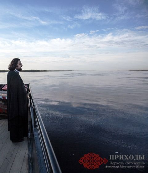 Большой статный мужчина с выдающимися усами и явно украинского вида обыденно указал нам место парковки на пароме, а увидев архиерея в машине, почтительно поклонился. Тут у многих людей заметно уважение к служителям Церкви, неподдельное и естественное. И переправили нас без денег, за молитвы.