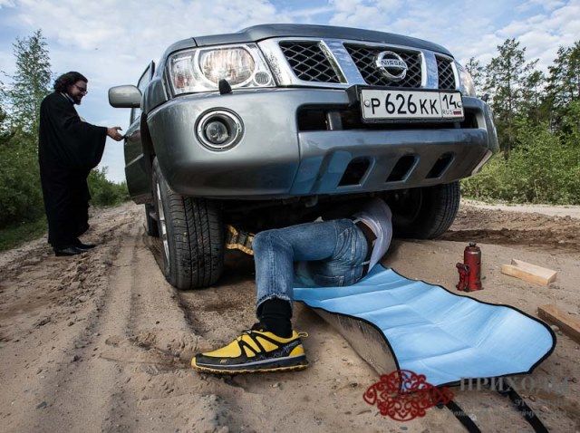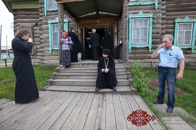 После дождей дорогу размыло, и поспать в пути не удалось – прыгая на ухабах каждые двадцать секунд, особенно сны не посмотришь. Да и спешили — Литургию надо служить. Высадившись после переправы через Лену, ехали четыре часа вдесятером на двух забитых до крыш богослужебной утварью, облачением, книгами машинах.