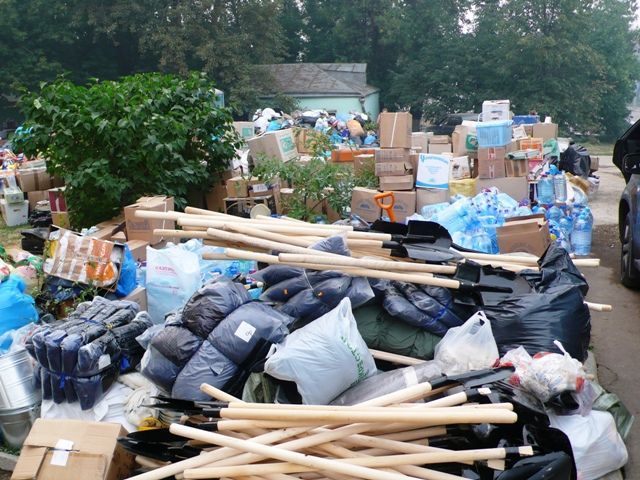 «Здравствуйте, я бы хотела отдать кровать…» — « Алло? Это помощь погорельцам? Есть холодильник!» -«Девушка, Вы не понимаете, рассада помидоров – это для погорельцев очень важно, это психологическое восстановление!» — «Ребята, дайте скотч!..» — «Есть машина, полторы тонны, могу ехать в пределах 500 км…» — «Почему не принимаете одежду? Ну, хотя бы елку возьмите…» —  «Мы тут воды привезли и лопаты, где разгрузить?» — «Я вам третий день звоню, заберите дедушкин пиджак, он как новый!..»