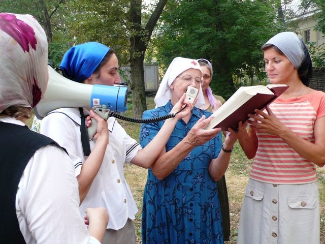 Службы глава Синодального отдела по церковной благотворительности и социальному служению епископ Пантелеимон организовывал, что называется, прямо «в чистом поле».  Это была необычная картина: люди в масках и респираторах молятся на заднем дворе среди груды вещей  под открытым небом. Самое яркое впечатление – исповедь транссексуала-добровольца. С первого дня он (она?) сидел и отвечал на звонки рядом со мной, и я все не знала, как к нему обращаться – в женском или мужском роде. Окружающие вначале бросали на него любопытные взгляды, а потом привыкли. На исповеди этот человек плакал, а владыка его обнимал. Это было удивительно.