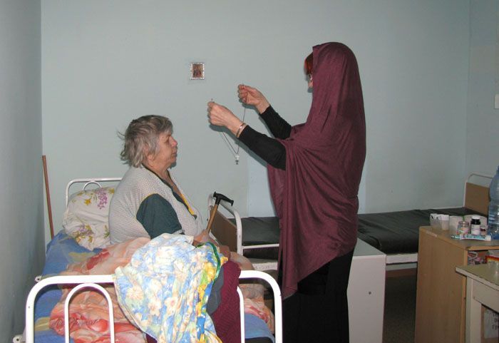 В ведении социальной службы Ильинского храма находится и так называемый хоспис – отделение сестринского ухода при Старооскольском медицинском колледже, где тоже ухаживают за престарелыми.