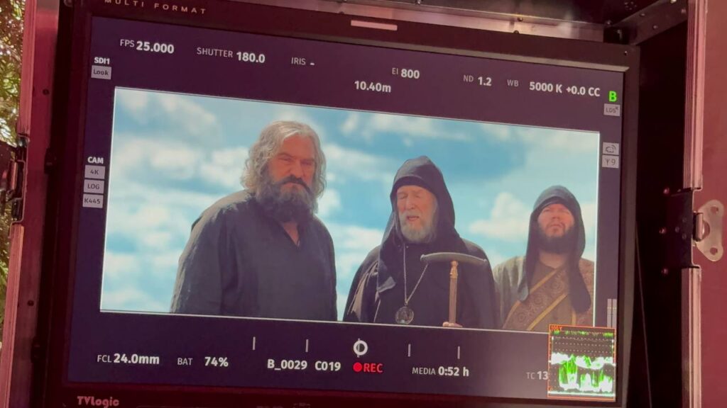 – Должен сказать, что это не первый исторический проект, в котором я принял участие. Отличие в том, что прежде приходилось воспроизводить особенности личного благочестия людей, характерные для XVI или XV века, что, в общем, было вполне доступно. А здесь был XII столетие. Несколько сложнее. Поэтому передо мной стояла задача консультировать моменты, связанные с богослужебной и церковной сферой, касаемые облачения духовенства, определенных богослужебных особенностей, которые характерны для давних веков. А они были не такими, как сейчас. Если бы мы с вами туда перенеслись, скажем, на Пасху, то даже не узнали бы само богослужение. Оно было абсолютно другим и по составу, и по манере исполнения отдельных моментов. Мы не очень поняли бы, что происходит и какой где сокровенный смысл, на чем делать акценты, для нас это было бы непонятно. Потому что был другой церковный устав. Поэтому авторам фильма приходилось выбирать компромиссный путь. Например, не нарушая явной исторической достоверности, которую мы реконструировали, допускать более близкое нам по времени многоголосное пение. Чтобы все-таки у зрителя создавался эффект присутствия на богослужении.