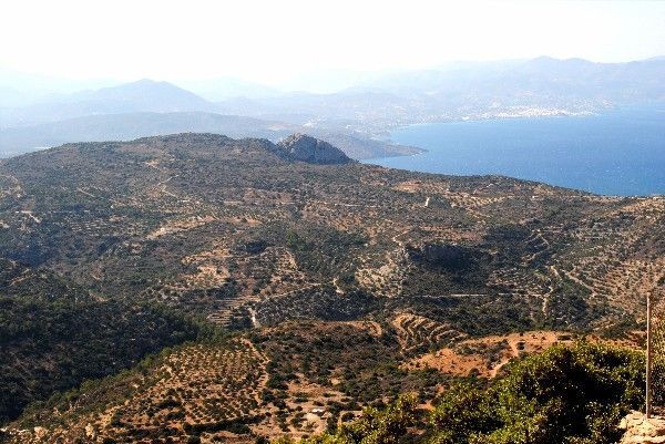 Хозяин гостиницы признался, что свежая рыба есть, но только в таверне в деревне за шесть километров: «Ах, вы арендовали машину, тогда это не проблема; дорога прямая, хорошая». Прямая дорога оказалась серпантином, шесть километров превратились в девять, десять, одиннадцать. На одном из виражей промелькнул коричневый указатель со словом панагиа, каким-то неудобоваримым продолжением в качестве названия и указанием расстояния – девять километров. Я давно знала, что коричневый цвет указателя означает любую достопримечательность, а что панагиа в данном случае переводится как монастырь, догадаться было нетрудно. Но девять километров в сторону от рыбного ресторана решили дело – промолчала.