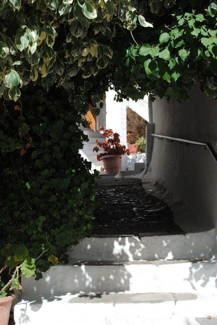 «Иди сюда», – позвала Леся. Я плутала где-то между помойкой и кельями. Подошла и увидела в серой-коричневой стене из природных камней небольшую белую дверь. За ней в прохладном полумраке тени узкого дворика пылали зеленью фруктовые деревья. Как мы ее не заметили раньше?