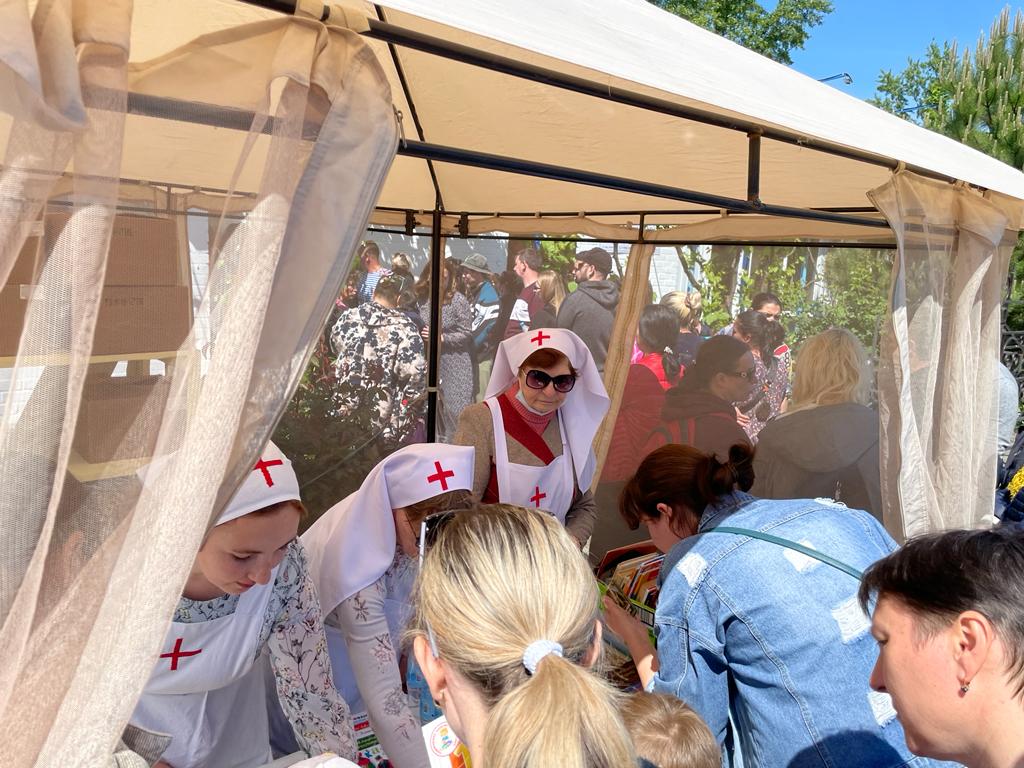 Группа медиков-добровольцев из больницы святителя Алексия оказывает помощь раненым в Горловской городской больнице, а также жителям Мариуполя. Православные добровольцы и сестры милосердия помогают раненым в госпиталях в Москве (31 человек), Одинцово Московской области (16 добровольцев), Ростова-на-Дону (10 человек, из них 4 добровольца из Москвы вахтовым методом) и в Новоазовской центральной районной больнице (4 человека из Москвы вахтовым методом). Учебным центром больницы святителя Алексия и Синодального отдела по церковной благотворительности организованы краткосрочные курсы для добровольцев, желающих помогать раненым в госпиталях. К середине мая курсы окончили пять групп волонтеров (74 человека). Всего на курсы добровольцев по уходу за ранеными подано 859 заявок.