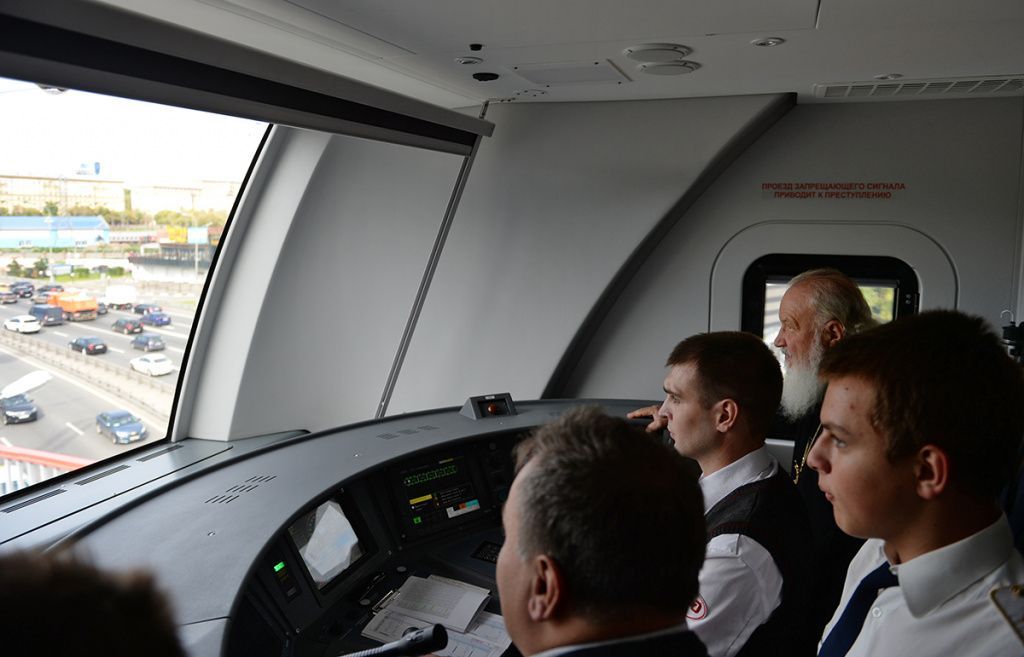 В кабине локомотива поезда, следующего по Московскому центральному кольцу