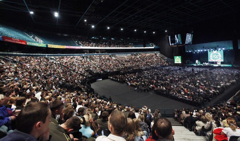Выступление Святейшего Патриарха Кирилла перед студентами высших учебных заведений Санкт-Петербурга. В Ледовом дворце на встречу с Патриархом собралось более восьми тысяч человек.