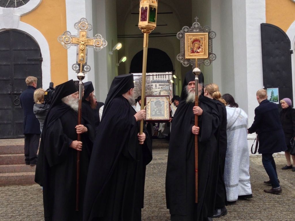 У врат Новоспасского ставропигиального мужского монастыря − одного из древнейших в столице − православную святыню встретил наместник обители епископ Воскресенский Савва. После молебна он обратился к верующим с единственной просьбой: молиться перед чудотворным образом не только о здравии и упокоении своих родных и близких, но и о мире церковном, об умирении на Украине: