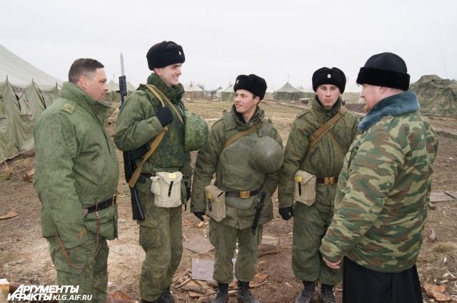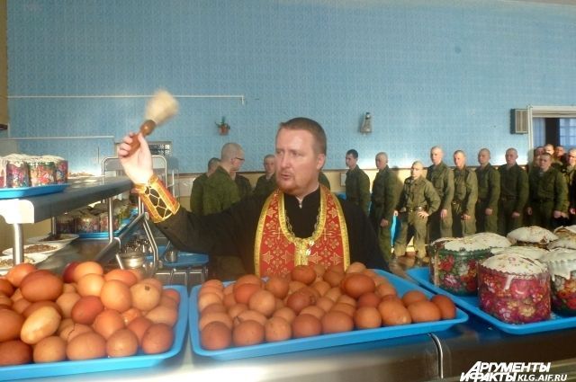 А если серьёзно, у батюшек в армии – своя война: за души новобранцев. Проводят они не только богослужения, но и индивидуальные и тематические беседы. К примеру, дважды в неделю – общественно-государственную подготовку. Говорят о вреде наркотиков, о Сергии Радонежском, Куликовской битве. Главное, пытаются связать это с сегодняшним днём. А ведь политическая ситуация сейчас напряжённая.
