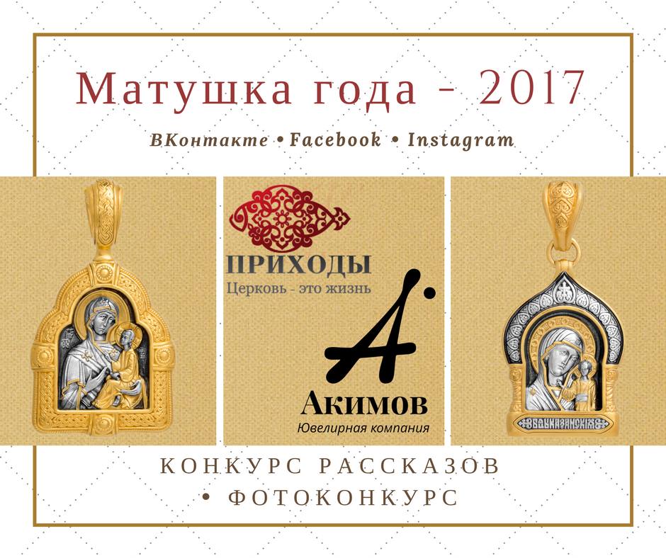 Мы очень хотим рассказать и показать красоту, женственность и доброту жен священнослужителей Русской Православной Церкви. Для этого портал «Приходы» с 18 апреля а по 14 мая 2017 года поводит конкурс «Матушка года», приуроченный к чествованию Православной Церковью женщин в пасхальный период: Жен-Мироносиц (30 апреля) и Фотинии Самарянки (14 мая).