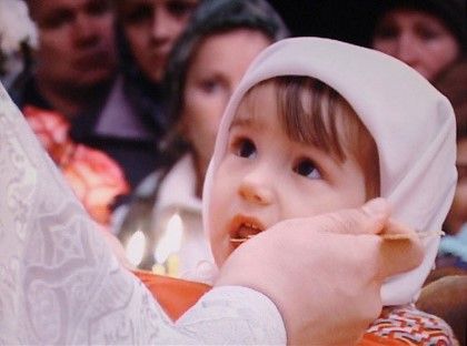 «Как можем мы ввести наших детей в богослужебную жизнь Церкви? Мне кажется, что в наших церквах для младенцев на руках у матерей нет особых затруднений. На руках у матери младенцу хорошо и покойно, никто не торопится, не уходит, не оставляет его одного. Необычные звуки пения, необычное освещение, запах ладана, блеск утвари и облачений — все это развлекает младенца. Даже Святое Причастие и раздача антидора воспринимаются как некое угощение. И это свято и праведно и не вызывает раздражения у взрослых молящихся, – пишет она в своих заметках. – Если ребенок постоянно причащался с самого младенчества, затруднений с причастием обычно не бывает, но когда ребенка начинают причащать в два, три года, дети часто отказываются, боятся — может быть, отождествляют это с лекарством или прививкой у доктора. Мне кажется, что причащать насильно орущих детей неправильно. Всегда с умилением вспоминаю старого нашего, простого батюшку, который радовался тому, как охотно причащалась моя шестимесячная дочь. Он был огорчен, когда после какой-то болезни, во время которой ей давали лекарство с ложечки, она вдруг расплакалась и не захотела причащаться. Придя к нам в гости пить чай, батюшка стал угощать малышку вареньем с ложечки, «чтобы она знала, что он ей всегда дает вкусное…» Думается мне, что какая-то подготовка такого рода может быть осуществлена и родителями. Видала я также, как мать одного такого боящегося ребенка причащалась только сама, держа ребенка на руках. После того как он несколько раз был поднесен к Чаше и видел, как причащается мать, он стал охотно причащаться и сам.