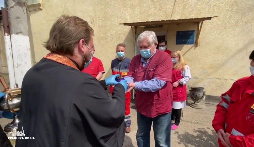 Клирики Одесский епархии Украинской Православной Церкви на Пасху сделали приятный сюрприз людям, которые без выходных оказывают медицинскую помощь всем нуждающимся. Сотрудники городских станций скорой помощи получили освященные куличи, праздничные продуктовые наборы от ресторана «Рыба» и лампадки с Благодатным огнем.