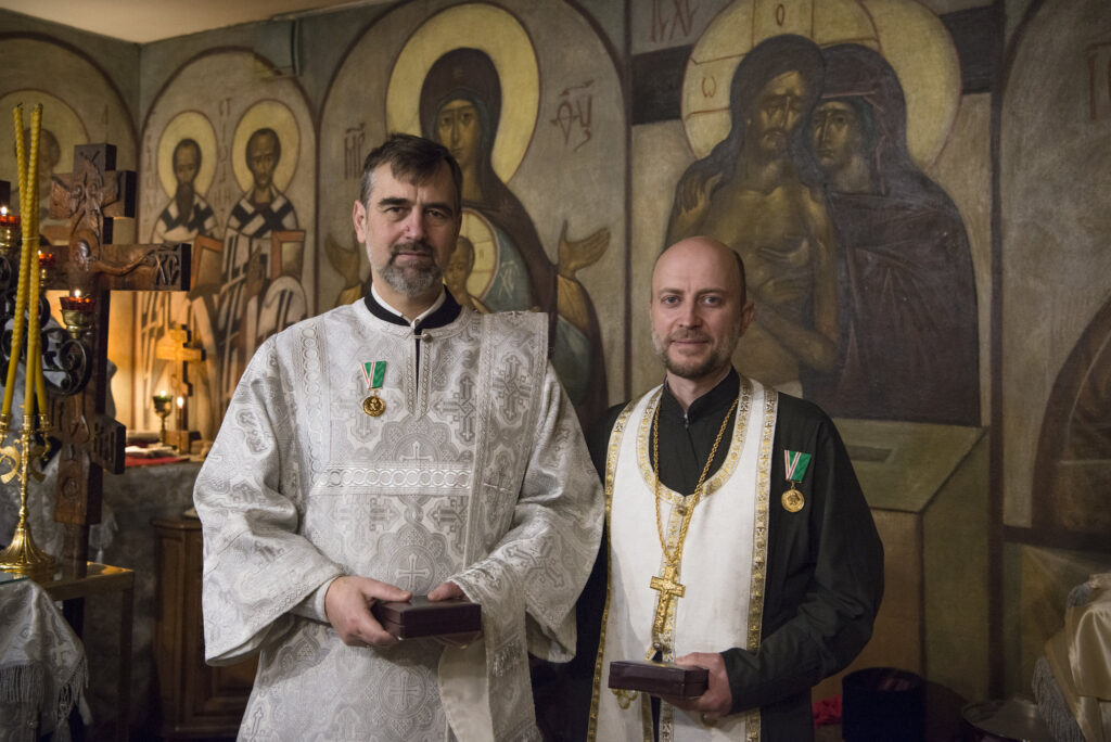 Священник Николай Тихончук — клирик парижского храма в честь иконы Божией Матери «Всех скорбящих Радосте» и преподобной Женевьевы Парижской, диакон Марк Андроников — Трехсвятительского кафедрального храма. Отец Марк — доктор медицины, общественный деятель, автор многих научных трудов по медицине. Отец Николай работает медбратом.