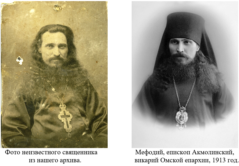 Во время написания этих записок, я перерывала интернет в поисках сведений об Уфе, ее истории, храмах, духовенстве. Просмотрела огромное количество фотографий и вдруг увидела фотографию священника, лицо которого показалось мне знакомым, – он был очень похож на нашего «неизвестного». Когда я поставила два изображения рядом, сомнений не осталось: это один и тот же человек. Под фотографией из интернета была подпись «Священномученик Мефодий (Красноперов), епископ Петропавловский». Ознакомившись с его житием, я поняла, что наша фотография была сделана в то время, когда он был архимандритом, ректором Уфимской духовной семинарии. Подпись на фотографии, наверняка обращенная к моему деду, была тщательно вытерта. Но самым потрясающим в этой истории для меня оказалось то, что я нашла фотографию в интернете 17 февраля 2014 года, в день памяти священномученика Мефодия. Именно в этот день после отслуженной в Никольском храме Петропавловска литургии его заколол штыком красноармеец; потом, уже мертвого, владыку искололи ножами, и в рану вонзили крест…