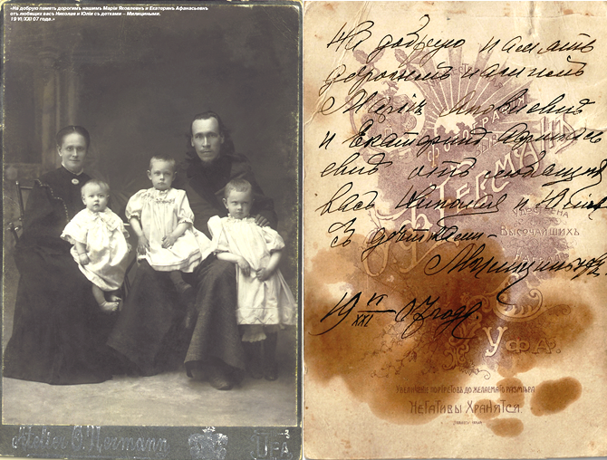 Наследство, которое осталось детям от родителей, состояло из отцовского Евангелия, женской энциклопедии по домоводству на французском языке, принадлежавшей их матери, и маленькой нательной иконки мучеников Гурия, Самона и Авива, почитаемых как покровители православной семьи. Молитвами этих мучеников не растерялись дети Милициных. И еще, каким-то чудом, несмотря на годы и испытания, у старших дочерей сохранились сделанные в фотоателье О.Ф. Германа семейные фотографии, благодаря которым удалось раскрыть многие тайны нашей семьи.
