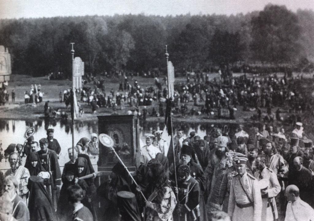 Особо благоприятное впечатление оказало на людей участие императора и великих князей в перенесении мощей преподобного в Успенский собор в Сарове; мощи несли в ковчеге из кедра среди преклонивших колени богомольцев. Также «царь, царица и вдовствующая императрица присутствовали утром и вечером на службах и приступали ко Святому Причащению вместе с остальными собравшимися»; они были в центре сложных богослужений и процессий, проходивших на улице в окружении певчих и духовенства в роскошных облачениях – дар царя специально по этому случаю.