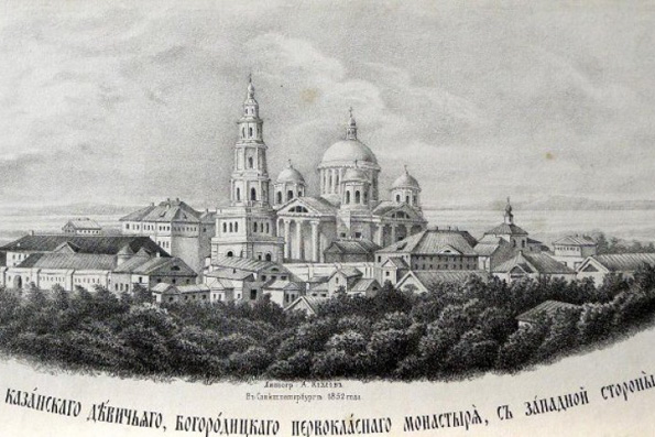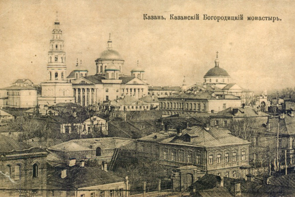 Всемирно известная Казанская икона Божией Матери привлекает к себе внимание верующих людей, богословов, ученых, искусствоведов. В Русской Церкви празднование в честь этого образа совершается не только в день его явления, но и 4 ноября, в память избавления Москвы и России от поляков в 1612 году, что ознаменовало окончание Смутного времени (а ныне эта дата празднуется также как День народного единства). В ознаменование помощи Божией Матери на Красной площади столицы был построен Казанский собор. Место явления чудотворной иконы не менее примечательно и знаменито. Казанский Богородицкий монастырь вместе с Казанским собором были и остаются одними из известнейших исторических памятников не только в Казанском крае, но и по всей России и за рубежом. Красота монастыря и собора привлекала к себе, помимо паломников, также талантливых фотографов и знаменитых художников. Внешний облик святынь был увековечен на фотоснимках, в гравюрах и литографиях. Предлагаем читателю подборку разнообразных гравюр, картин, почтовых карточек с изображением собора Казанской иконы Божией Матери в ансамбле Казанского Богородицкого женского монастыря.