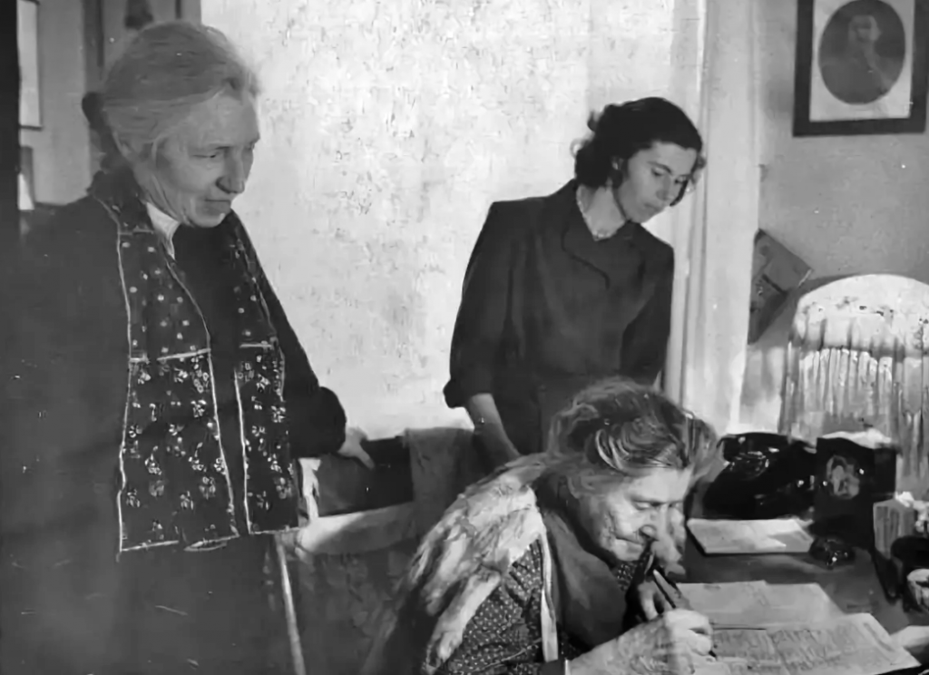 – Да, он, перед тем как уйти, написал на дверях что-то. Он вообще хорошо относился к сотрудникам музея, они же его не выгнали. Но тогда здесь была вот эта Ксения, которую я пришла подменять потом. Она не смогла прочитать это послание. Предположительно написал он, что дом занят майором таким-то. Но через некоторое время пришли немцы и попросили убрать надпись.