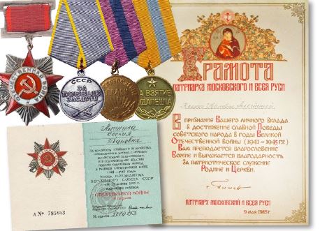 Кроме того, за личные подвиги она представлена к правительственной награде — ордену «Красная Звезда». К наградному списку монахини следует добавить медаль «За боевые заслуги», Патриаршую грамоту, орден Отечественной войны II степени и юбилейную медаль «Сорок лет Победы в Великой Отечественной войне 1941–1945 гг.».