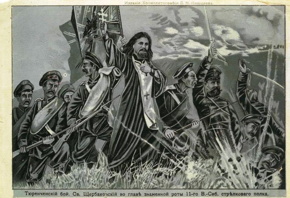 1 мая 1904 года совершил свой подвиг священник 11-го Восточно-Сибирского стрелкового полка Стефан Васильевич Щербаковский. В бою под Тюренченом, у реки Ялу, что на южном участке границы между Кореей и Китаем, благословив стрелков, батюшка с пением «Христос воскресе» пошел в атаку во главе знаменной роты, лишившейся командира.