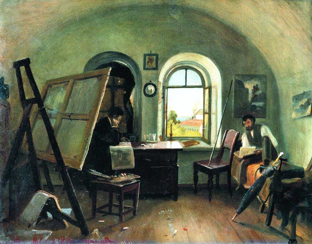 «Шишкин и Гине в мастерской на острове Валаам». 1860 год