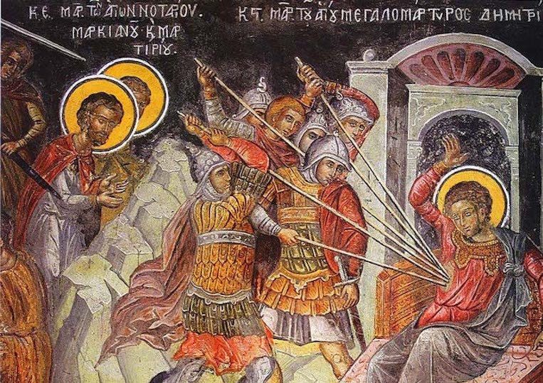 Узнав об этих обстоятельствах, суровый император Диоклетиан приказывает казнить верного слугу великомученика Димитрия Солунского…