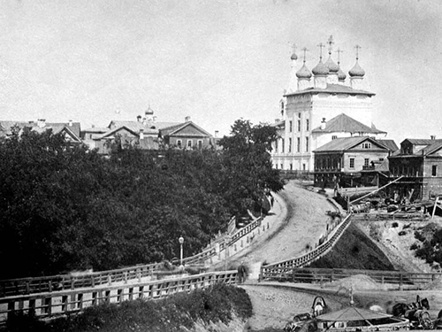 Эта церковь лишь ненамного моложе, чем ровесник Нижнего Новгорода – кремлевский Михаило-Архангельский собор. В первой половине ХIV века, когда нижегородцы, осмелев, стали поселяться не только у кремля, но и за Почайной – небольшой речкой, огибающей кремлевский холм по дну глубокого оврага – Мироносицкий храм уже существовал. Тогда он был деревянным, а вокруг теснились деревянные же домики жителей Започаинья.