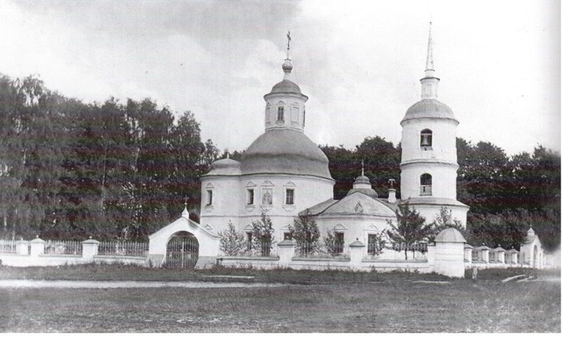 Каменный храм в честь Смоленской иконы Божией Матери «Одигитрии» построили в 1782 году. По сообщению историка и археолога Е.Н. Клетновой, дворянин Белкин, усадьба которого сильно пострадала от неприятеля, «вооружил своих дворовых и крестьян и нападал на небольшие французские отряды» отступавшей из Москвы неприятельской армии.