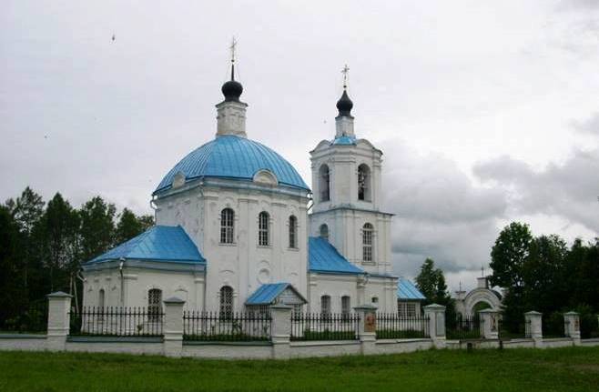 Каменный храм в честь Преображения Господня построили в 1786 году на средства майора Н.А. Глинки. В 1812 году владелец усадьбы капитан Глинка, при нашествии неприятеля «вынужденный удалиться с семейством своим», поручил Преображенский храм «охранению и заботливости» местного священника. Престарелый отец Иоанн Стабровский «принял близко к сердцу святость своего долга; и, наблюдая за целостию храма, успел вразумить крестьян, обольщенных врагами порядка, и воодушевить в них мужество для борьбы с мародерами».