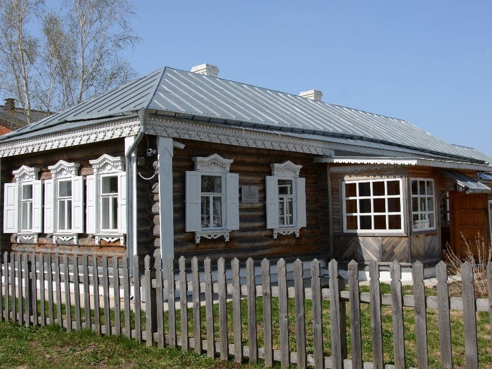 В музее-заповеднике Константиново напротив храма глаз сразу замечает дом с красивыми резными окошками. Этот дом священника, восстановленный в октябре 2010 года, в начале ХХ века был культурным центром села.