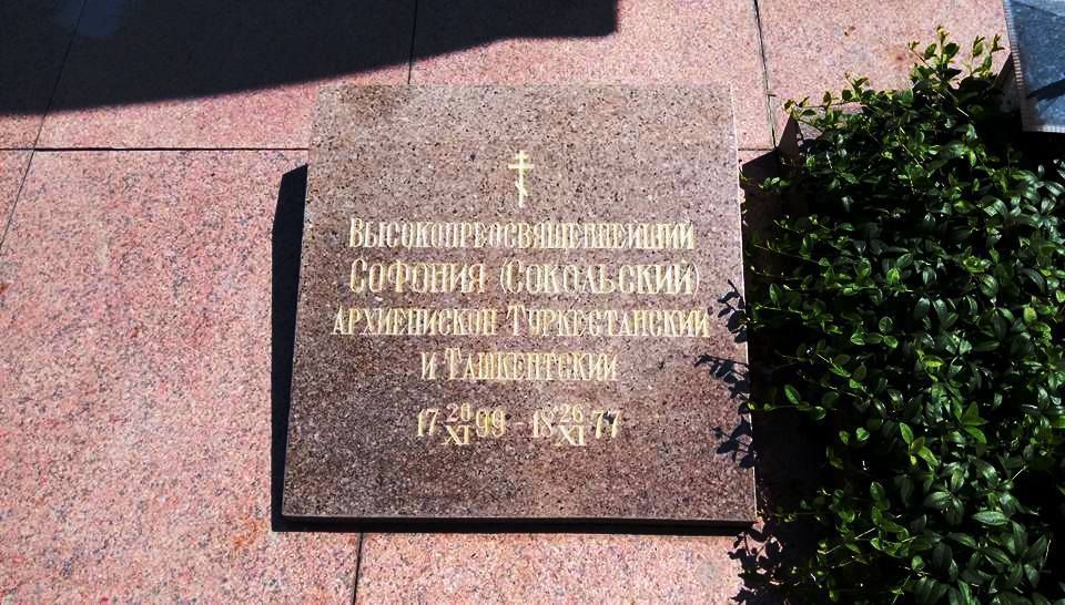 Здесь с 1872 по 1877 годы совершал архипастырское служение первый Туркестанский святитель – епископ Софония (Сокольский), скончавшийся в Верном 27 ноября 1877 года. Тело почившего епископа было погребено в склепе под полом Софийского собора, разрушенного землетрясением. Спустя 20 лет в 1897 году в соборе был погребен епископ Никон (Богоявленский).
