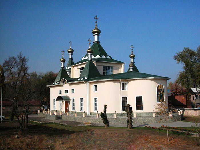 Первым православным храмом этих мест стал Софийский собор города Верного, освященный во имя святых мучениц Веры, Надежды, Любови и матери их Софии. Храм, архитектурный «двойник» которого мы можем видеть в Алма-Ате ныне, был построен по проекту архитектора Брусенцова в 1895 году на месте более раннего собора, воздвигнутого в 1871 году и разрушенного землетрясением 1887 года. Внешний облик подвергшейся разрушению из-за стихийного бедствия церкви дошел до нас благодаря рисунку П. Кошарова, одного из участников экспедиции Петра Семенова-Тянь-Шанского. Она, в свою очередь, возникла на месте молитвенного дома, что был построен в 1855 году, почти сразу после основания города.