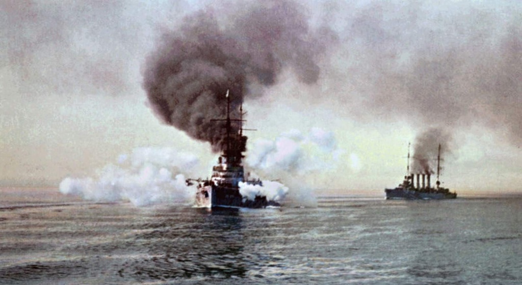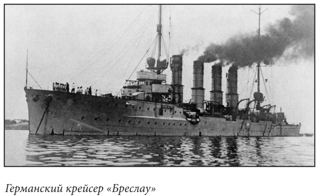 И «Гебен»… струсил. Испугался отчаянной атаки подбитого миноносца, а следом приближались еще два. Да и батареи береговой обороны оправились от неожиданности, их снаряды ложились все ближе. «Гебен» развернулся и стал уходить. Получив три попадания крупными снарядами (четырнадцать убитых), «Гебен» развил полный ход и начал отход.