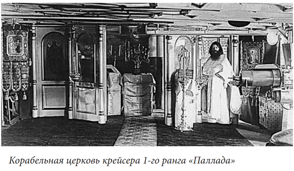 В 1913 году в российском военно-морском флоте насчитывалось 973 священнослужителя. Священника приравнивали по званию к капитану, и это не было простой формальностью: флотские священники не только несли церковную службу, но в решающие минуты находились в самых горячих точках сражений, подавая пример стойкости и мужества. Морской устав предписывал священнику быть примером христианской жизни, посещать и духовно утешать страждущих, во время сражения находиться при раненых, заботясь о своевременной исповеди и причащении Святых Таин. В непосредственные обязанности флотского священника входило преподавание матросам Закона Божия и обучение низших чинов грамоте, ободрение словом Христовым слабых, утешение страждущих силою таинства, напутствие умирающих за православно-христианское Отечество.