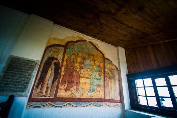 Еще одно открытие ожидало реставраторов в 2013 году: в алтаре церкви удалось обнаружить полы из керамической плитки. Натурные исследования и анализ плитки дают основание предполагать, что полы эти первоначальные и относятся к XVI веку. По центру рисунок пола прерывается – здесь располагался первоначальный иконостас, когда трапезная палата не была освящена целиком под храм. Также остались следы алтарной преграды в виде дощатого основания с отверстиями под балясины.