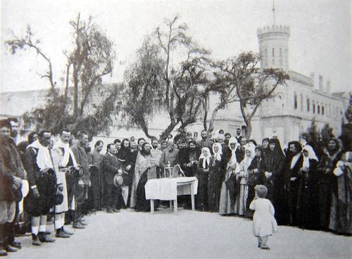 Речь идет о жизни Русского Иерусалима, где во второй половине XIX века были построены рядом друг с другом Троицкий собор для Русской Духовной Миссии, два подворья для паломников – мужское и женское, названные Елисаветинским и Мариинским, и Русская больница. Все это называется до сих пор «Русские постройки». В 1889 году подворья и больница были переданы в ведение Императорского православного палестинского общества, которое в тот же год закончило строительство своего первого подворья – Нового, именно так оно сначала называлось, а позднее получило название Сергиевского.